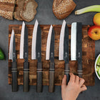 Blade Types: Gyuto (7.1 in / 180mm), Nakiri (7.1 in / 180mm), Petty (5.5 in / 140mm)