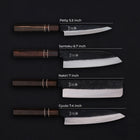 • Blade Types: Gyuto (7.1 in / 180mm), Nakiri (7.1 in / 180mm), Petty (5.5 in / 140mm), Santoku (6.7 in / 170mm)