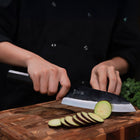 This versatile Japanese chef's knife excels in the "three virtues": superbly slicing meat/fish, dicing, and mincing vegetables. The razor-sharp Blue Steel blade ensures clean cuts and longevity, paired with a comfortable, handcrafted black ebony handle for secure control during daily prep.